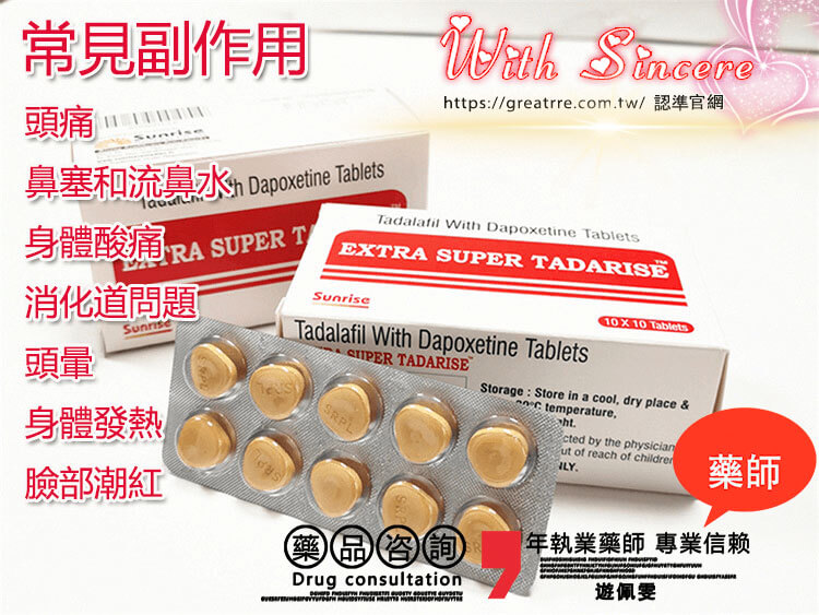 以 雙效犀利士(Super Tadarise) 為例,其副作用大致可分為: