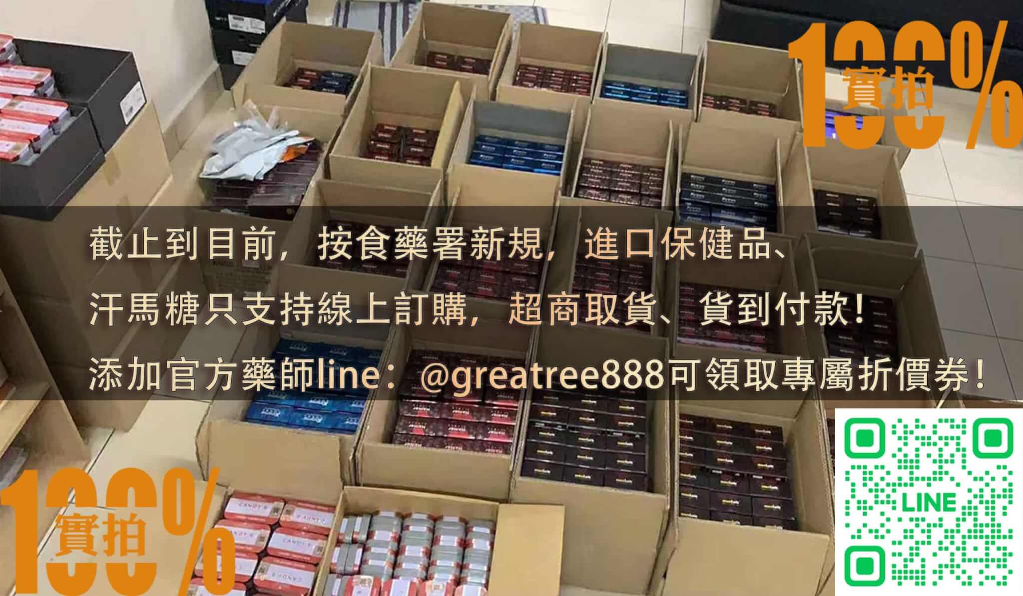 截止到目前,按食藥署新規,進口保健品、汗馬糖只支持線上訂購,超商取貨、貨到付款!