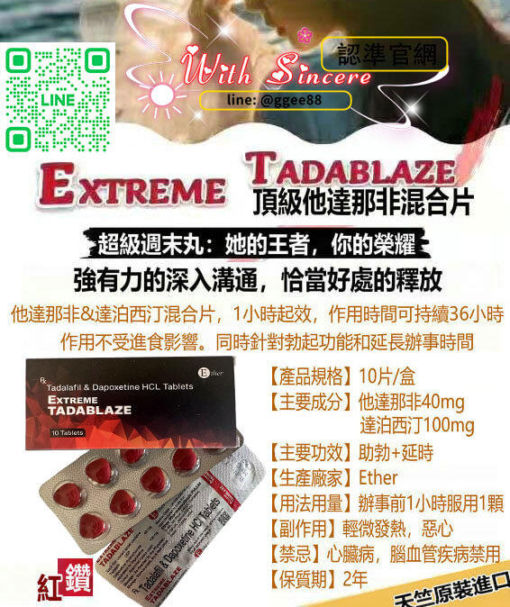 印度紅鑽 Extreme Tadablast 是專為現代男性量身打造的雙效威而鋼配方,整合 長效勃起+延時射精 功能,幫助您在性愛中保持硬挺又持久。不論是應對臨時激情,還是維持穩定親密關係,紅鑽都是您最堅實的性愛後盾!