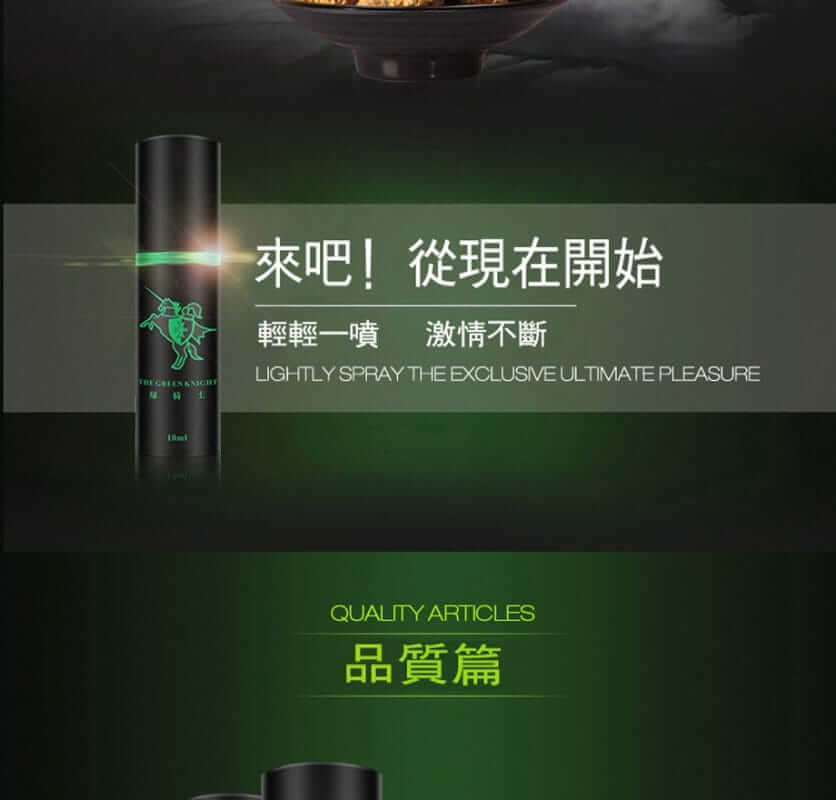 法國綠騎士持久液,針對男性早洩問題而開發的持久產品,性愛時間太短,力不從心草草了事的解決了 讓愛人達不到高潮,綠騎士專為男性設計研發,精選植物精華,吸收快,效果強勁,噴一噴激發性欲,給她愛的時間久一些 也多一些享受,重振男人雄風。