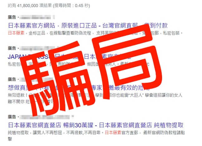 在google中搜尋日本藤素等等關鍵字,會出現各種自稱官網的網頁出現。其實這些都是偽藥廠商。為什麼都是偽藥呢?